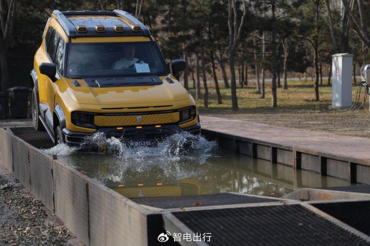正式開場之前,咱們先對兩款車“驗明正身”,深藍G318采用的是裝甲風設計理念,再配上特有的日照金車身顏色,整體的裝備感和機械感更加突出;方程豹鈦7車身簡潔方正,造型上借鑒了不少路虎衛士的設計,屬于是經典的傳統硬派形象。從外表來看,兩款車都是典型的方盒子,但至于內在細節的差異,就要看看它們在運動會上的表現了。
